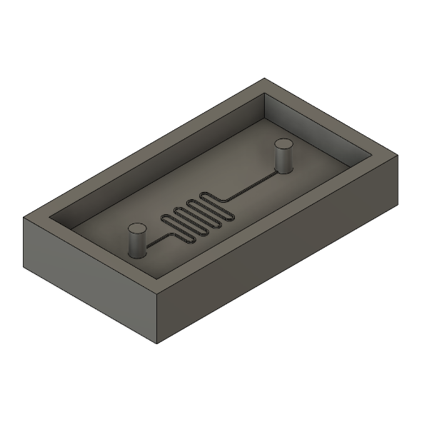 As an aside: the way to make a template mold is also by casting. You can use scrap material lying around to make a mold for your template mold. The dimensions aren’t very critical. Alternatively you can 3D print a mold using this file we’ve prepared and cast resin into it to make your template mold. You will really only need 1 template mold but it’s always a good idea to make backups in case your first one gets damaged or if you want to duplicate multiple circuits in parallel.