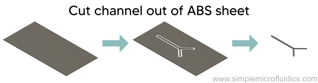 Cut the microfluidic channel geometry out of a sheet of ABS 0.20mm to 0.50mm thick.