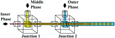 Researchers from University of Victoria have developed a plug-and-play microcapillary platform for the generation of multicompartmental double emulsions. This device requires a low cost 3D printer for fabrication and syringe pumps for operation. The modular platform is fabricated from a flexible resin. The microcapillary platform is able to generate water-in-oil-in-water, oil-in-water-in-oil, and oil-in-oil-in-water multicompartmental double emulsions with between 1 and 10 inner droplets. The easy fabrication and operation of this device makes it useful for both laboratories as well as people with no expertise.