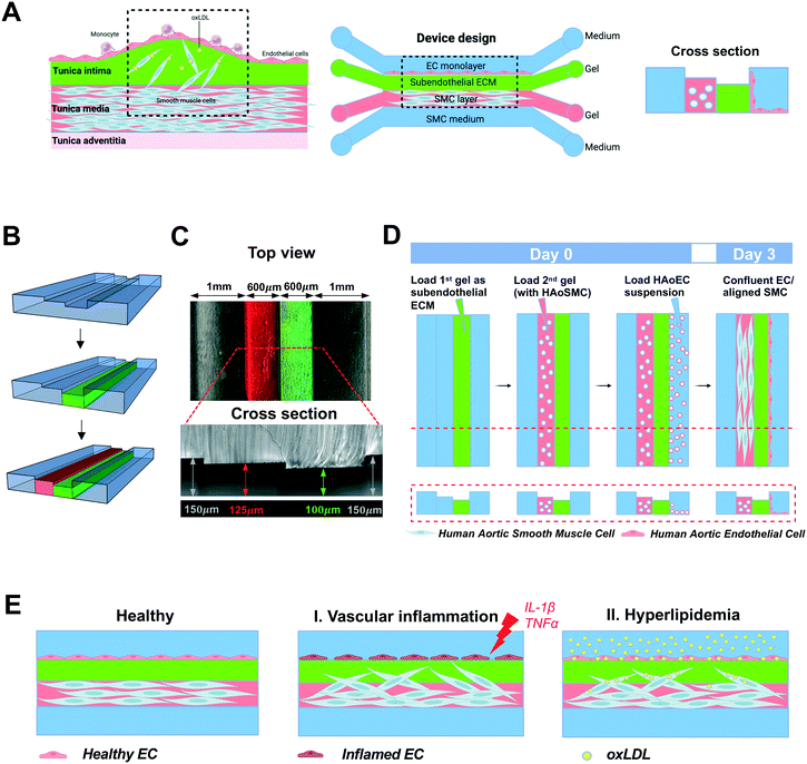 Atherosclerosis is hard to study due to the lack of an in vitro human arterial model. This research introduces a microfluidic endothelial cell – aendothelial cell (EC)–smooth muscle cell (SMC) 3D co-culture platform that can simulate the arterial wall cells both structurally and biologically. Various early atherogenic events were studied on chip by endothelial stimulation. They also showed the atheroprotective effects of drugs like Vitamin D and metformin on the wall on chip.